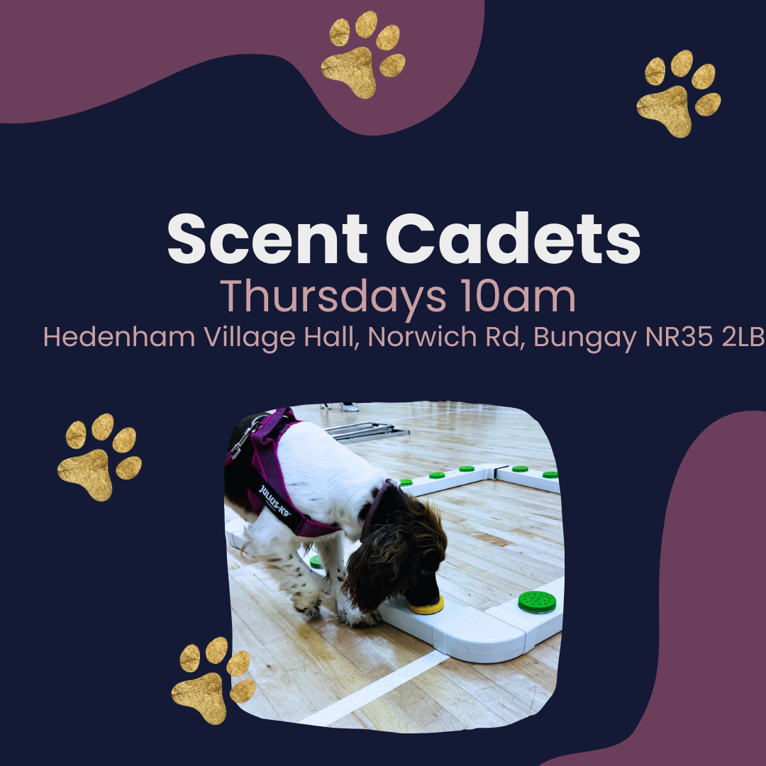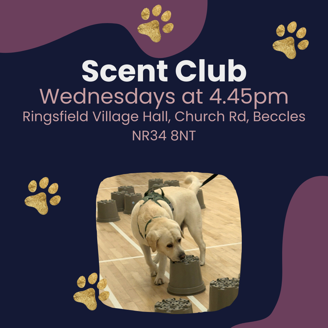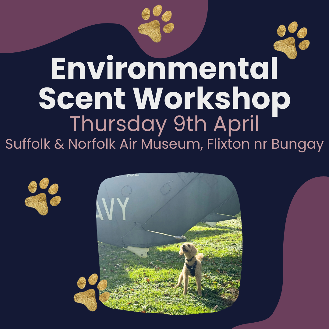 For scent work one to ones we have both half hour and one hour slots available, usually in Hedenham near Bungay or Ringsfield near Beccles.